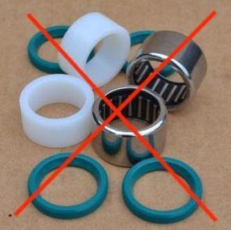 2 Casquillos basculante para Fantic 240/300 de material antifricción de delrin, situados a ambos extremos del basculante. Se obtiene una mejora en el sistema de amortiguación trasero, dado que en el eje reduce la fricción, dejando atrás el obsoleto sistema de rodamiento de rodillos que marca el eje, se evita el desgaste del eje, el óxido de los rodillos y retenes y su mantenimiento.