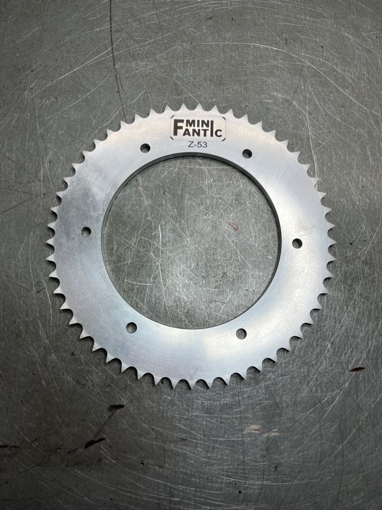 Z 53 transmission sprocket, for Fantic 200, CNC machined, in 80-7075 aluminum alloy.