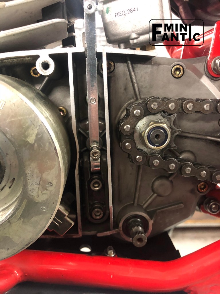 Clutch piston lever located in the Miranelli engine crankcase, which is longer than the original and which gives the system a smoother actuation in the touch of the handlebar lever. The lever is articulated on a needle bearing, to reduce friction. An extension is supplied to fix the clutch cable housing.