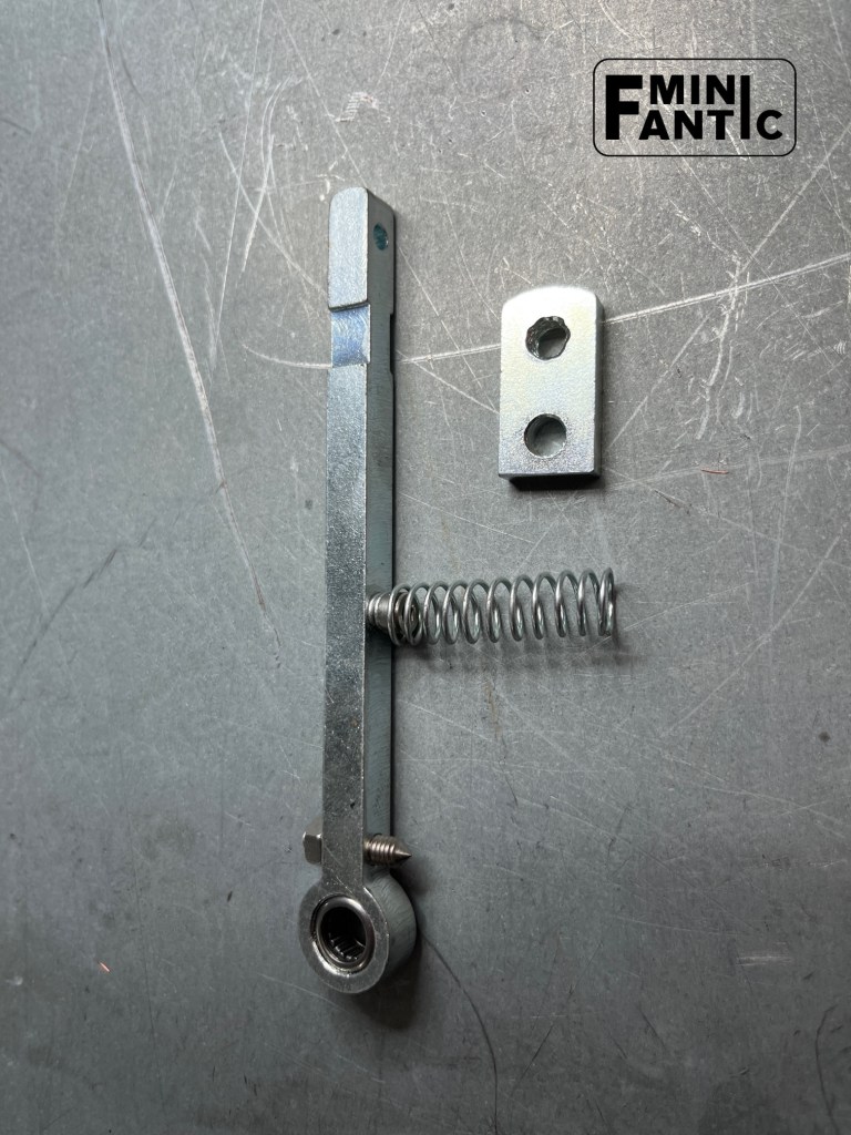 Palanca del émbolo del embrague situado en el cárter motor Miranelli, que es de mayor longitud que el original y que confiere al sistema, una mayor suavidad de accionamiento en el tacto de la maneta del manillar. La palanca se articula sobre un rodamiento de agujas, para para reducir la fricción. Se suministra un alargo para fijar la funda del cable del embrague.