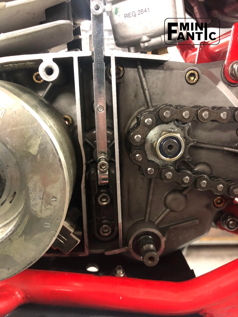 Separador entre piñón de cadena y el mecanismo de accionamiento del émbolo de embrague, para proteger de toda la suciedad que lanza la cadena al girar.