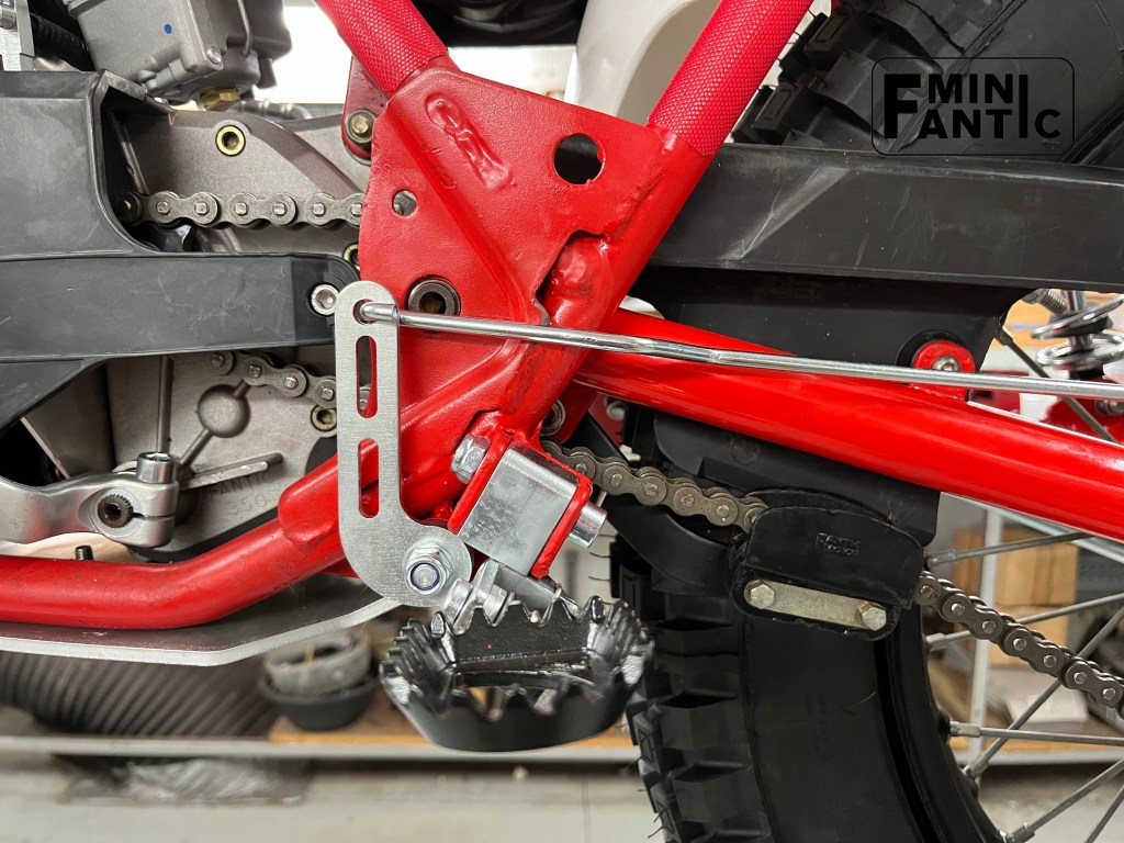 Con esta varilla, el accionamiento del freno trasero se consigue que no se apoye en el basculante y que no roce con el amortiguador trasero, obteniendo rigidez y un mayor tacto de frenada.